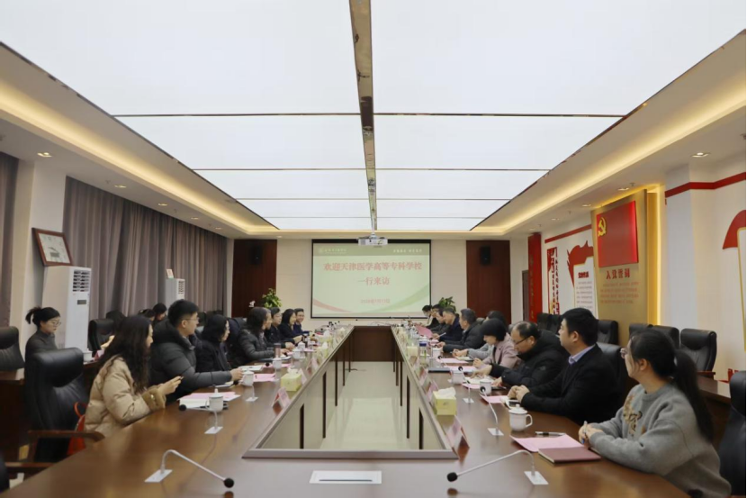 1月13日上午,天津医学高等专科学校党委副书记、校长张彦文一行来校考察交流。校党委副书记、院长吕雄文,校领导严继贵、潘焱焱等接待。