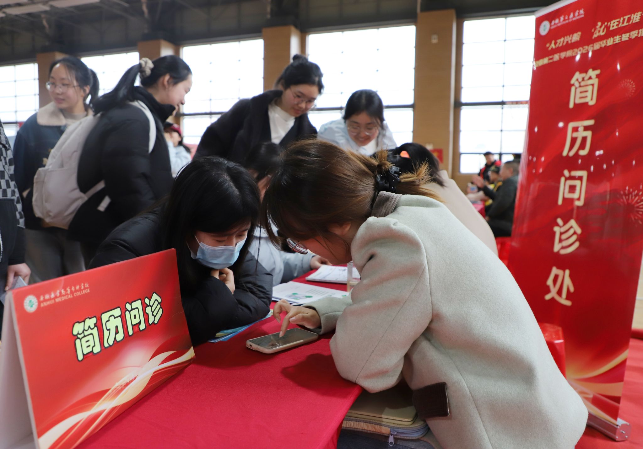 本次招聘会现场洽谈气氛热烈,毕业生投递简历踊跃,众多单位与毕业生达成了初步就业意向。值得一提的是,本次招聘会也是学校“大学生职业规划大赛”的重要配套实践环节,旨在通过“以赛促学、以赛促就”的方式,引导学生及早明确职业方向、提升求职竞争力,并将大赛中锤炼的职业规划能力转化为现场择业的精准行动。这场集赛事联动、公益服务、精准对接于一体的就业盛会,不仅为2026届毕业生打开了通往职业生涯的广阔大门,也生动诠释了安徽第二医学院作为区域医学人才培养重镇,在服务地方、促进民生、推动发展中所展现的深厚情怀与坚实力量。(撰稿:学生处 何飞;核稿:学生处 胡艳;审稿:党委宣传部 夏鹏程;编辑:党委宣传部 姜楠)