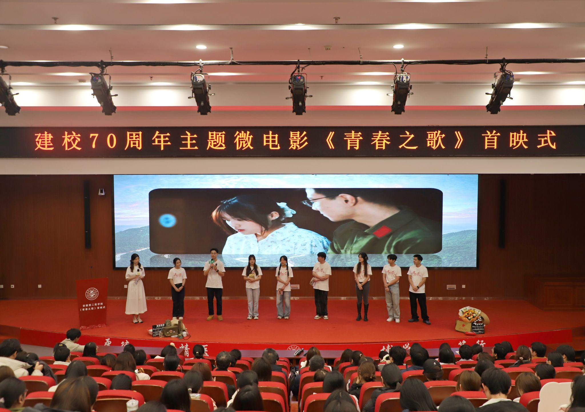 首映礼在热烈掌声中落下帷幕,后续该片将通过学校官方新媒体平台、校官网等渠道展播,让更多师生、校友及社会各界人士感受安徽第二医学院七十年的奋斗历程与青春风采,激励更多人在新时代新征程上,以青春之我、筑梦之我,续写学校与青年一代的精彩篇章。(撰稿:校团委 陈炎;核稿:校团委 周紫薇;审稿:党委宣传部 夏鹏程;编辑:党委宣传部 姜楠)