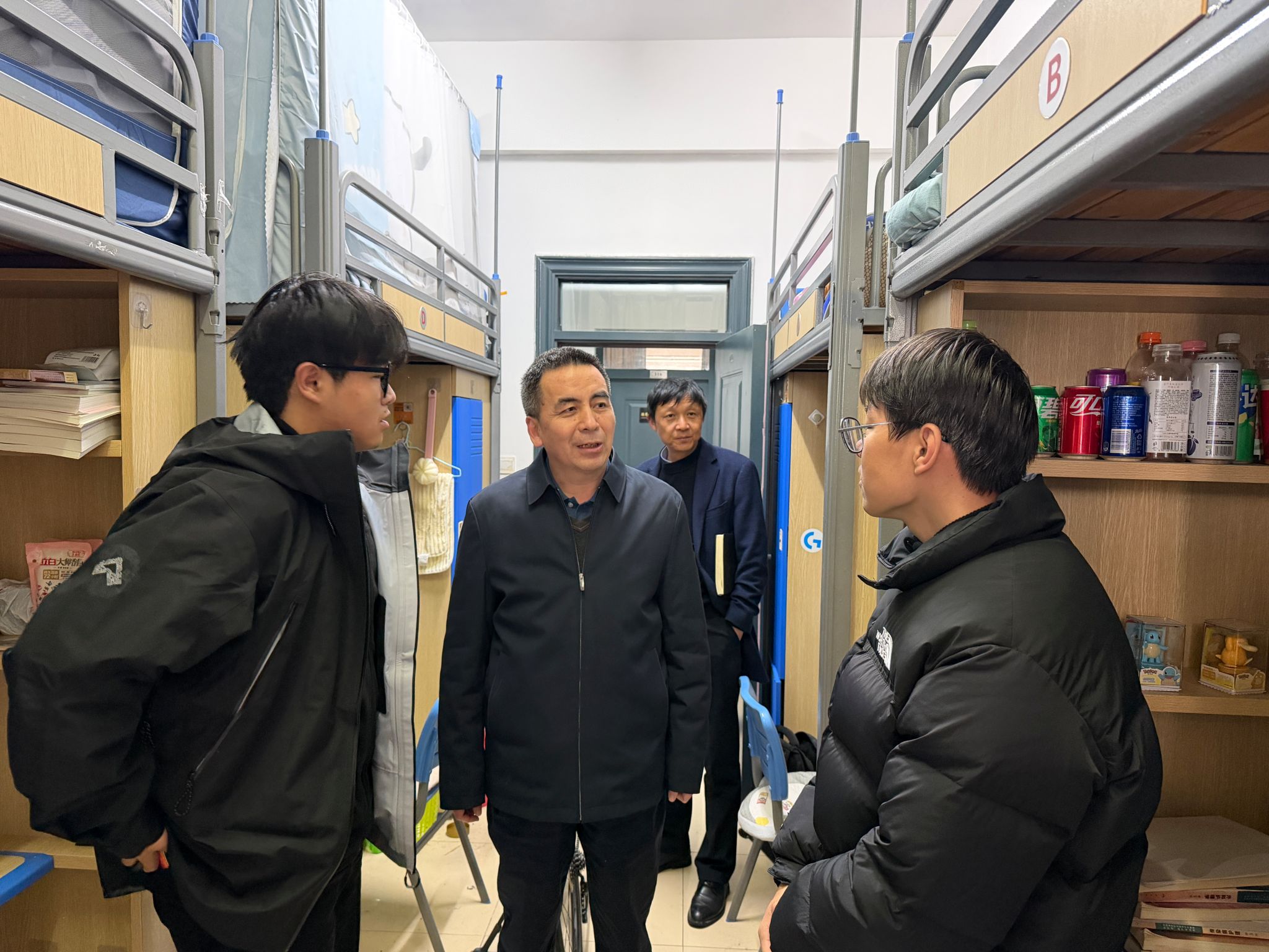 吕雄文一行先后来到新桥校区的多个学生公寓楼栋。走进宿舍,吕雄文与同学们亲切交谈,“家是哪里的?”“假期过得怎么样?”“新学期有什么计划?”,详细询问大家的假期生活、返校适应情况以及新学期的学习规划,并关切地了解同学们对校园学习生活的满意度。